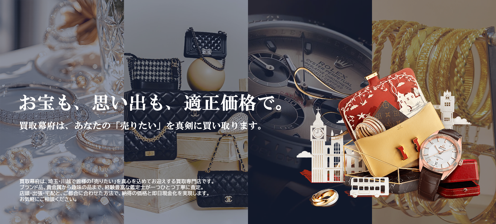 買取幕府は、埼玉県川越市で高価買取を実施する専門店です。 貴金属からブランド品、趣味の収集品まで、多様な品目を丁寧に査定し、即日現金買取に対応しております。 地域のお客様の「売りたい」に真心を込めてお応えします。